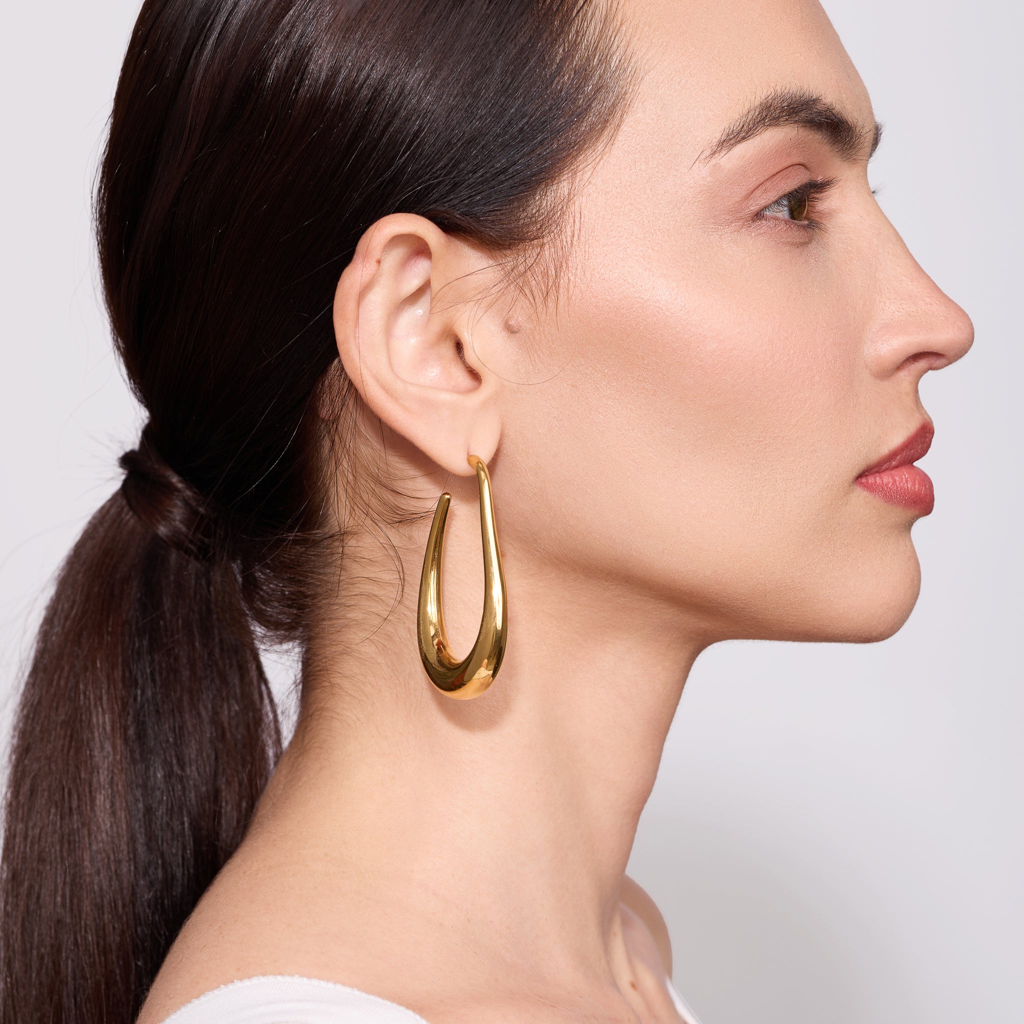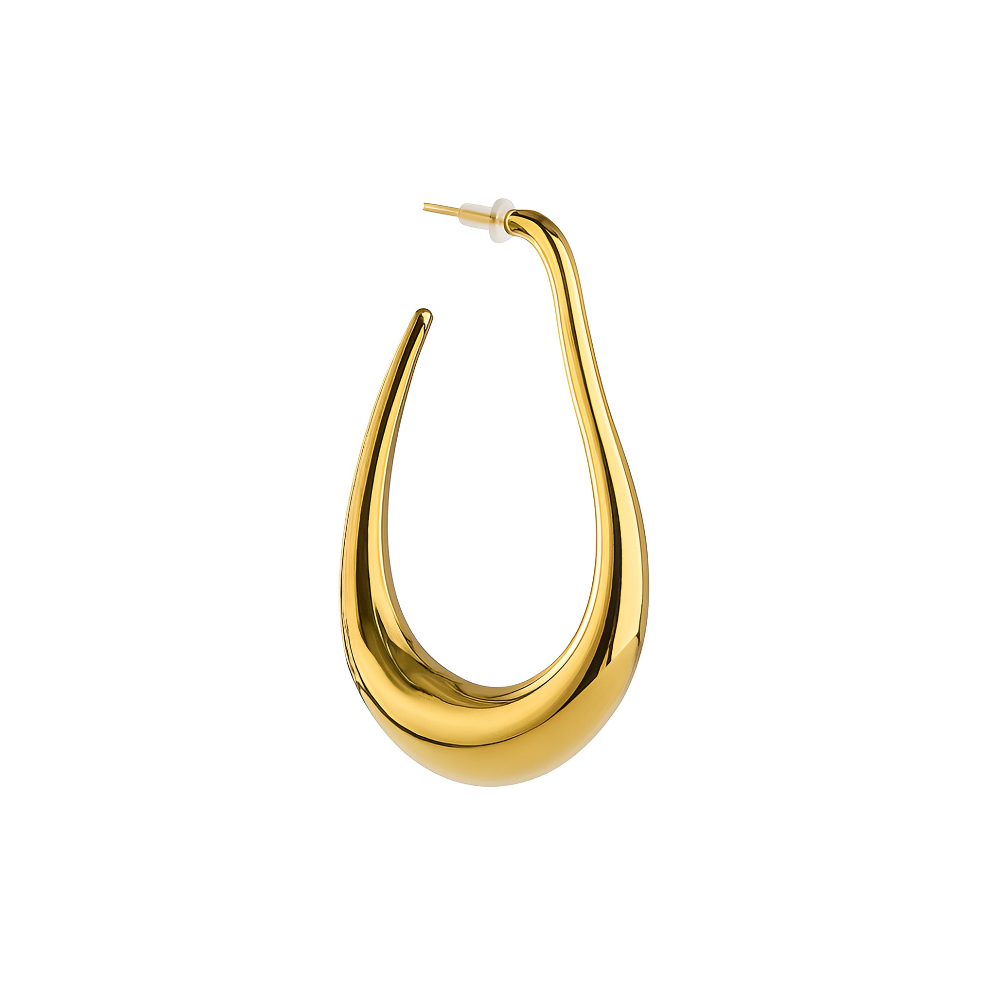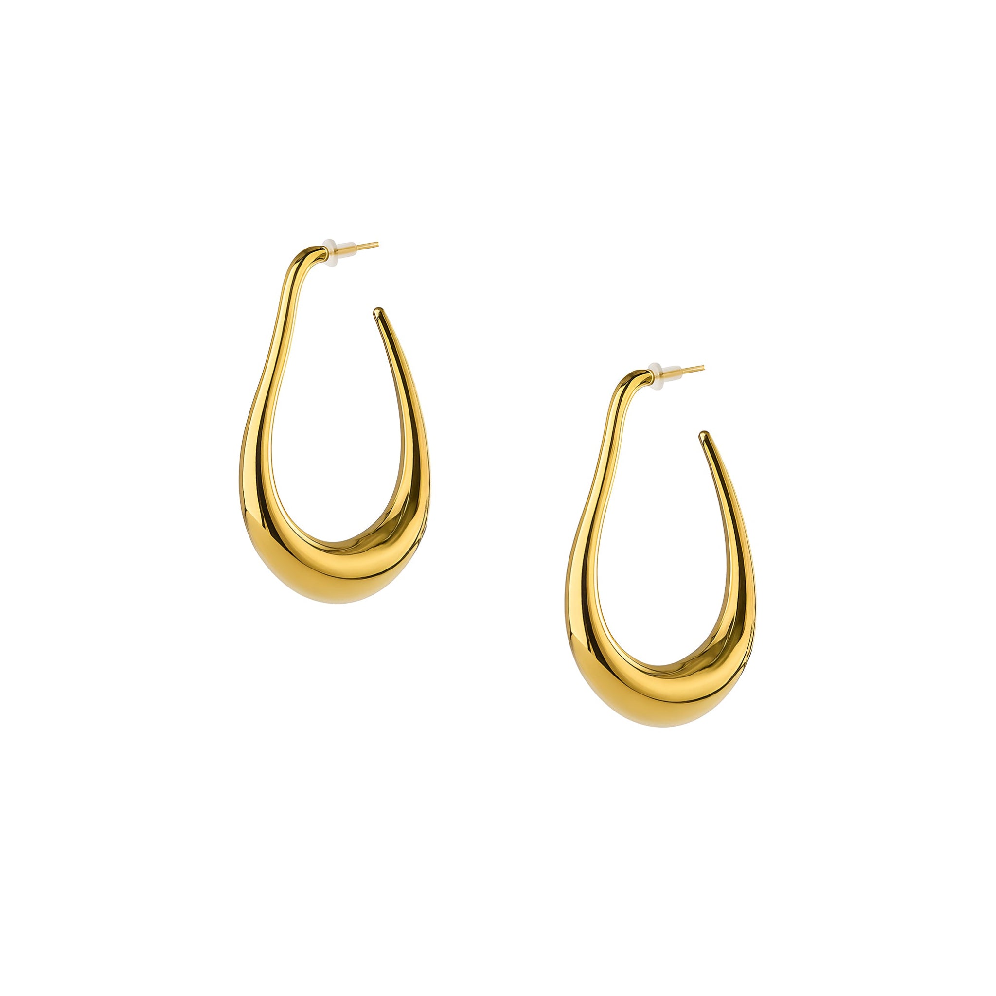 The Embrell Solferia Elva Earrings (elf-like) channel sculptural grace with their fluid, teardrop silhouette and polished gold finish. Bold yet understated, their organic curve flatters the jawline and elevates any look with quiet confidence. Perfect for those who love minimal forms with maximum presence.