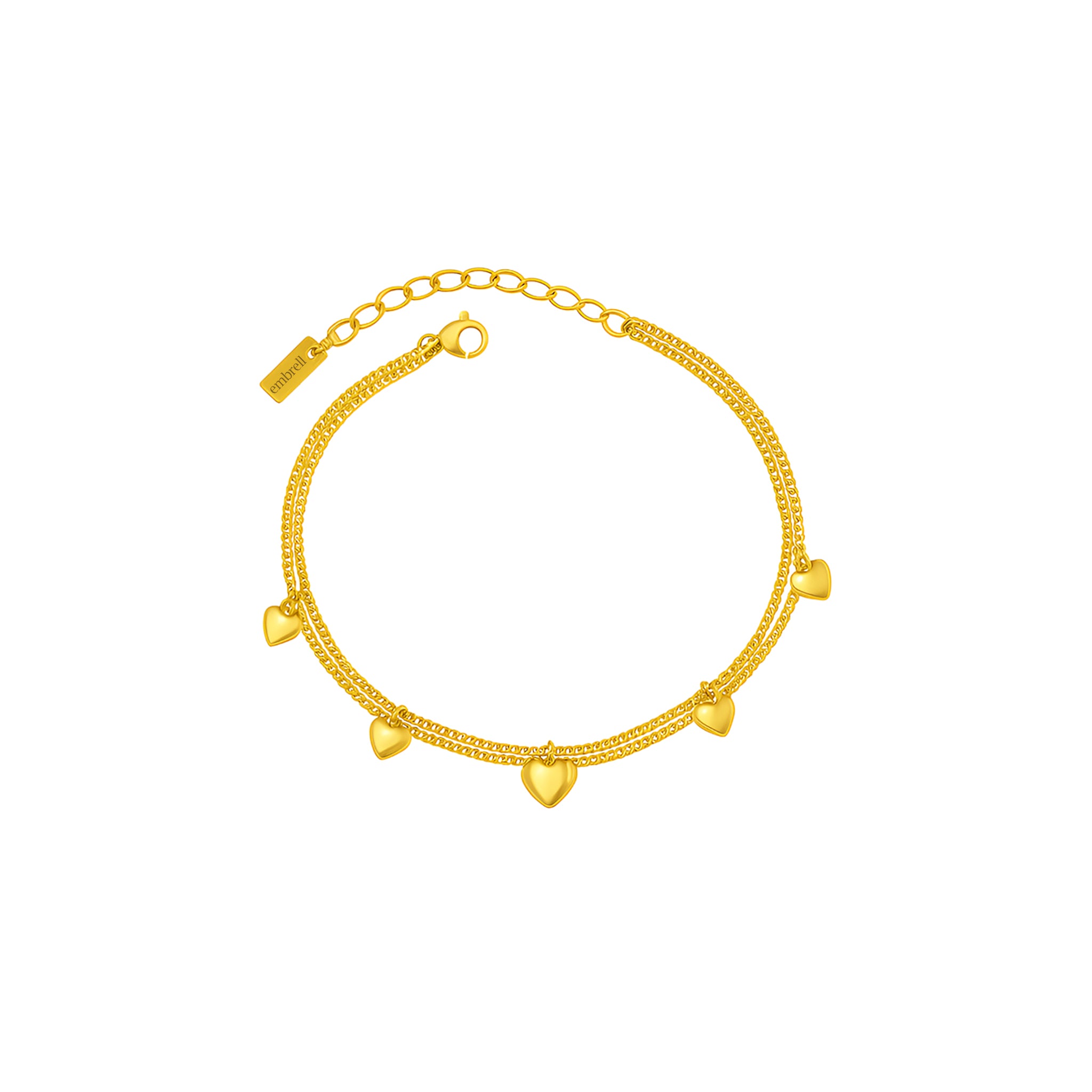 The Embrell Solferia Minara Bracelet (guiding light) features dual fine chains dotted with polished heart charms. Light and feminine, it’s designed to add a subtle romantic touch to everyday styling, perfect for stacking or wearing solo.