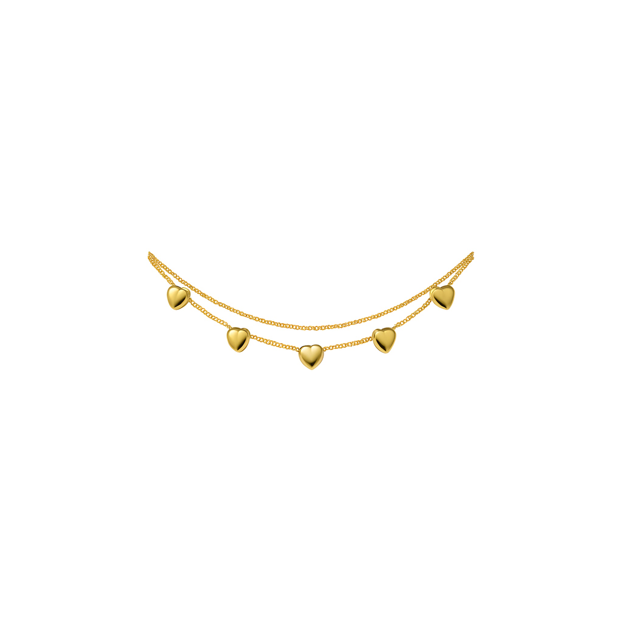 - Double-strand design with mini heart accents