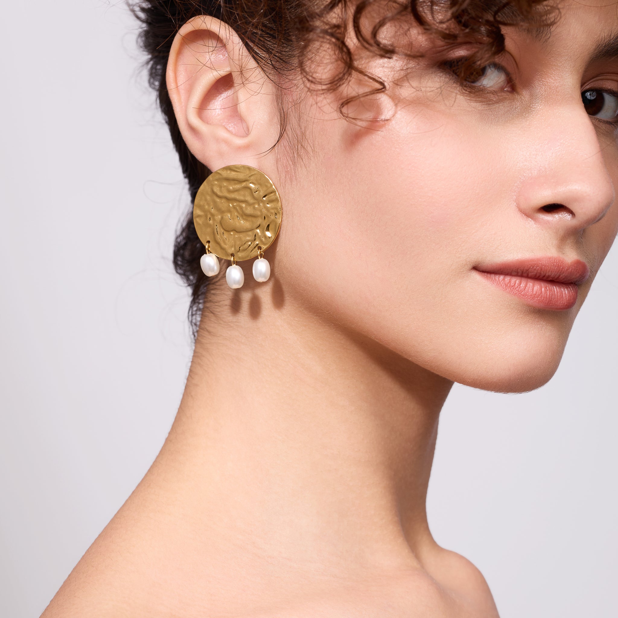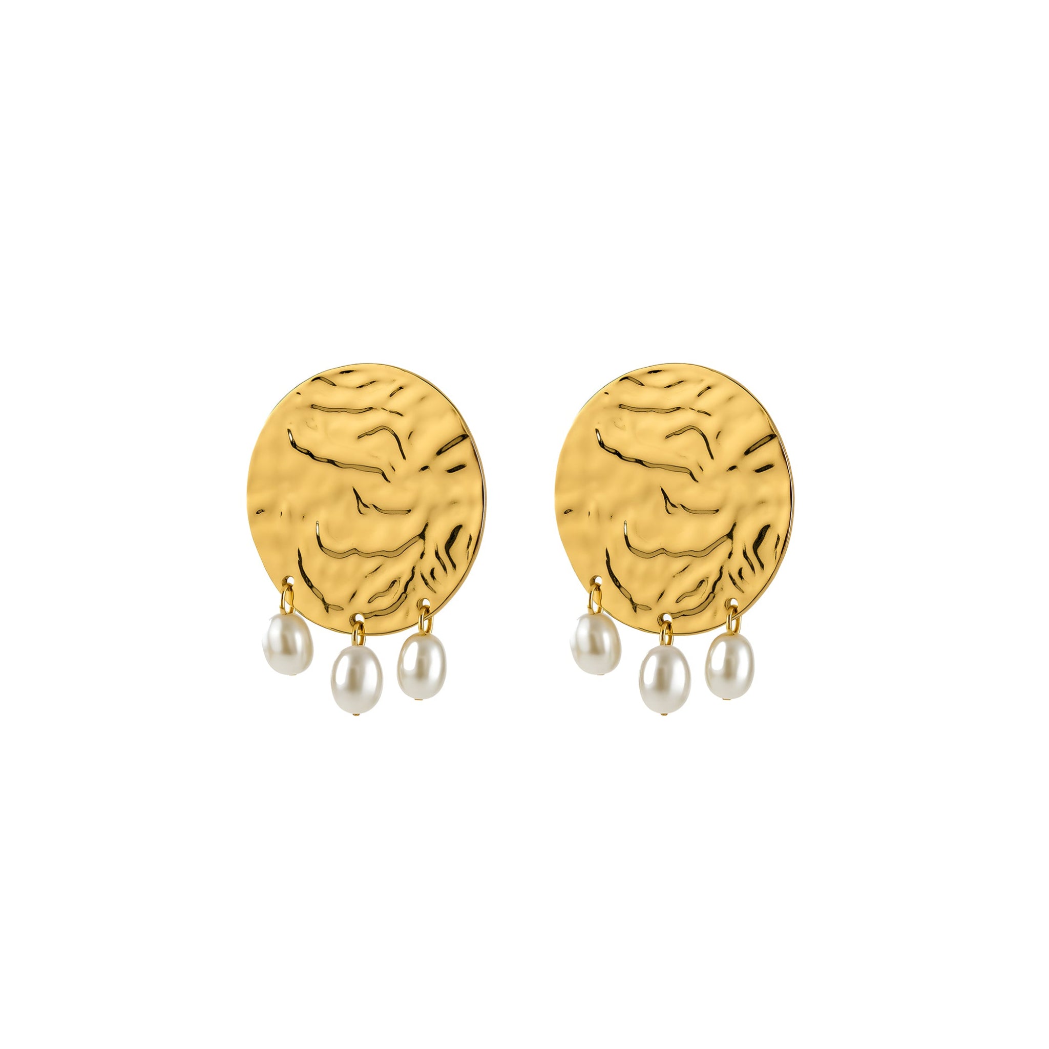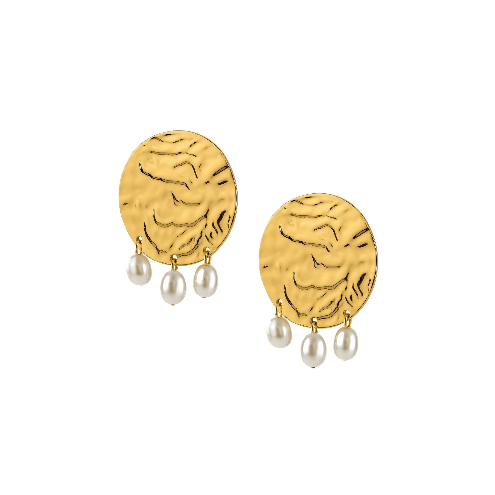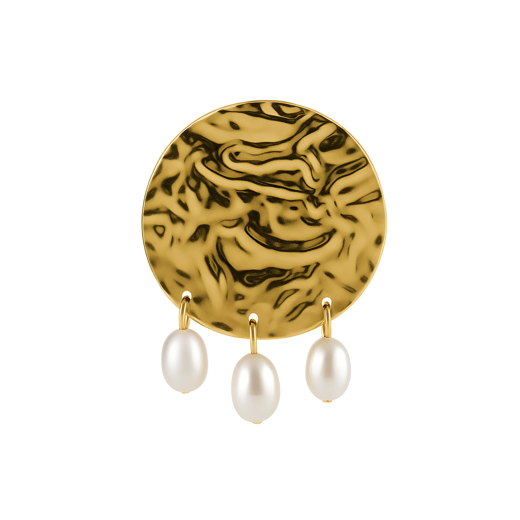 The Embrell Solferia Solmara Earrings (sun and sea) evoke the glow of sunlit shores with their hammered gold texture and playful pearl-like drops. Sculptural and expressive, these earrings bring a bold, organic elegance to your look, perfect for breezy vacations, alfresco evenings, or whenever you want your accessories to speak for themselves.